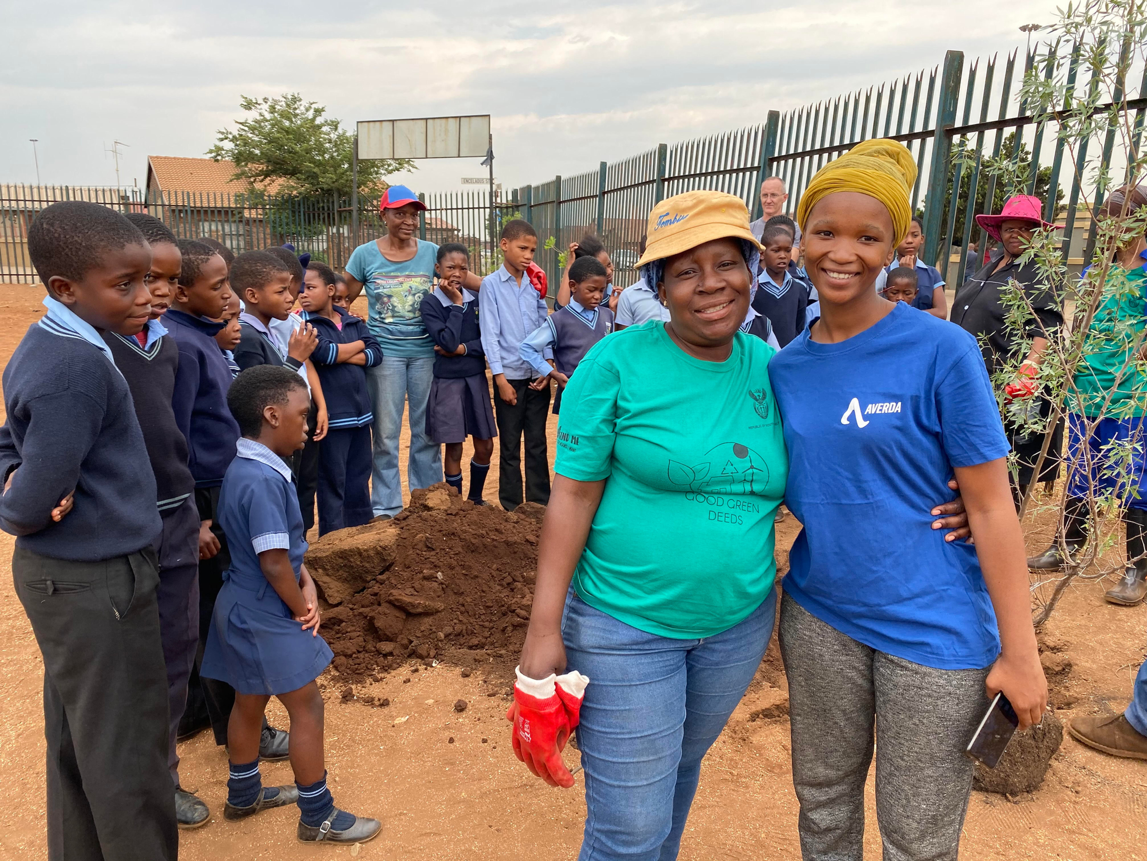 We arrived at Mashemong Primary School to conduct an educational talk to a sea of eager and bright faces. Helen Erasmus, Southdowns College Pre-Primary’s former headmistress, joined us to assist. The school embraced us with open arms and invited all AREHLWEKISENG volunteers for a heartwarming cup of tea in their staff boardroom after we had planted trees kindly organised by Helen Duigan donated by Hibron Nursery and transported by Hennops Blue Director Amanda Jacobs. As fortune would have it the Deputy Principal Lucas Madiba organised a digger, so the job was done super fast with backs saved. Mandla from Environmental Affairs had learners’ undivided attention explaining the importance of trees and how to look after them. Seagulls flew overhead, a reminding call from the ocean that all rivers lead into the sea. Hotdogs and bananas were also enjoyed in the staff room thanks to Outsurance!
